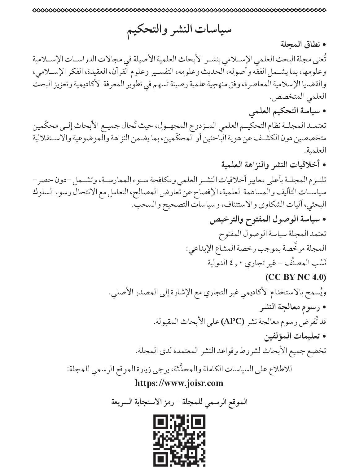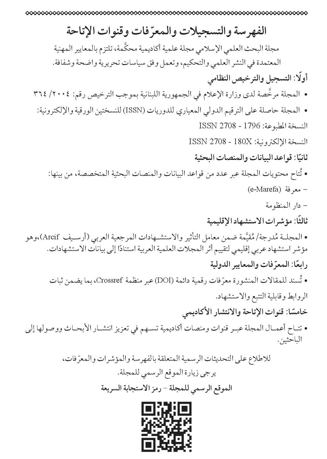 وقد حصلت مجلة البحث العلمي الإسلامي على الرقم الدولي للدوريات المحكَّمة (ISSN):