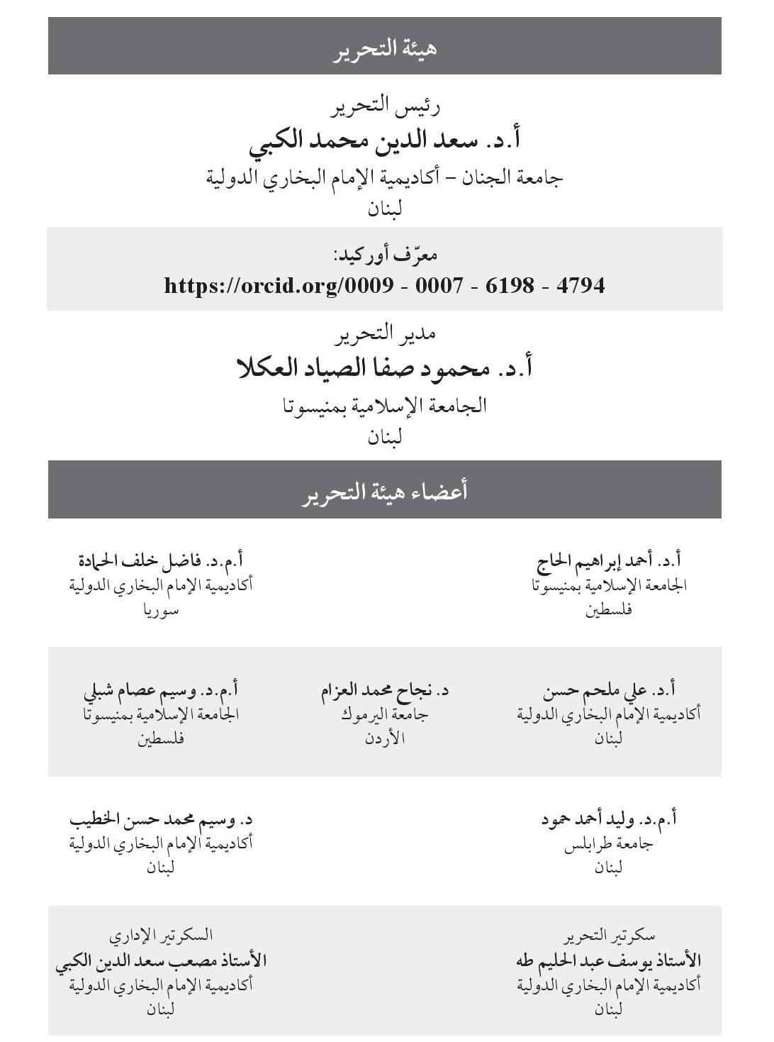 مجلة البحث العلمي الإسلامي، مجلة علمية إسلامية محكَّمة، متخصصة بالدراسات الإسلامية، حائزة على ترخيص من وزارة الإعلام في الجمهورية اللبنانية برقم 364/2004، رئيس تحريرها والمدير المسؤول فيها، الشيخ الأستاذ الدكتور سعد الدين محمد الكبي، اللبناني الجنسية، من مواليد بيروت 1960م, أستاذ الدراسات العليا في جامعة الجنان، ورئيس أكاديمية الإمام البخاري الدولية، ومدير المكتب التمثيلي للجامعة الإسلامية بمنيسوتا / لبنان.
