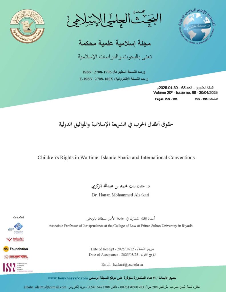“This research addresses the issue of violations against children living in areas rife with armed conflicts and wars, and proposes effective mechanisms to protect them. It also aims to gain a deeper understanding of the impact of wars on children, and to demonstrate the Islamic Sharia’s keenness to preserve the child’s rights and prevent them from participating in wars or being harmed or injured by them. Additionally, the research evaluates the effectiveness of international and local efforts made to protect children, and provides practical recommendations to improve their conditions. The research covers several key aspects, including the Sharia and legal framework of children’s rights in wars, the types of violations they face, the international and local efforts to protect them, and a detailed account of the rights that must be ensured for them.