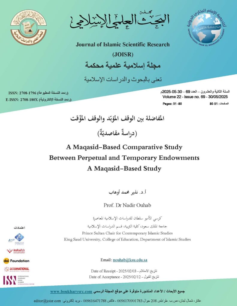 Perpetual Endowment – Temporary Endowment – Maqāṣid al-Sharīʿah (Objectives of Islamic Law) – Prioritization of Interests – Prevention of Harm and Attainment of Benefit