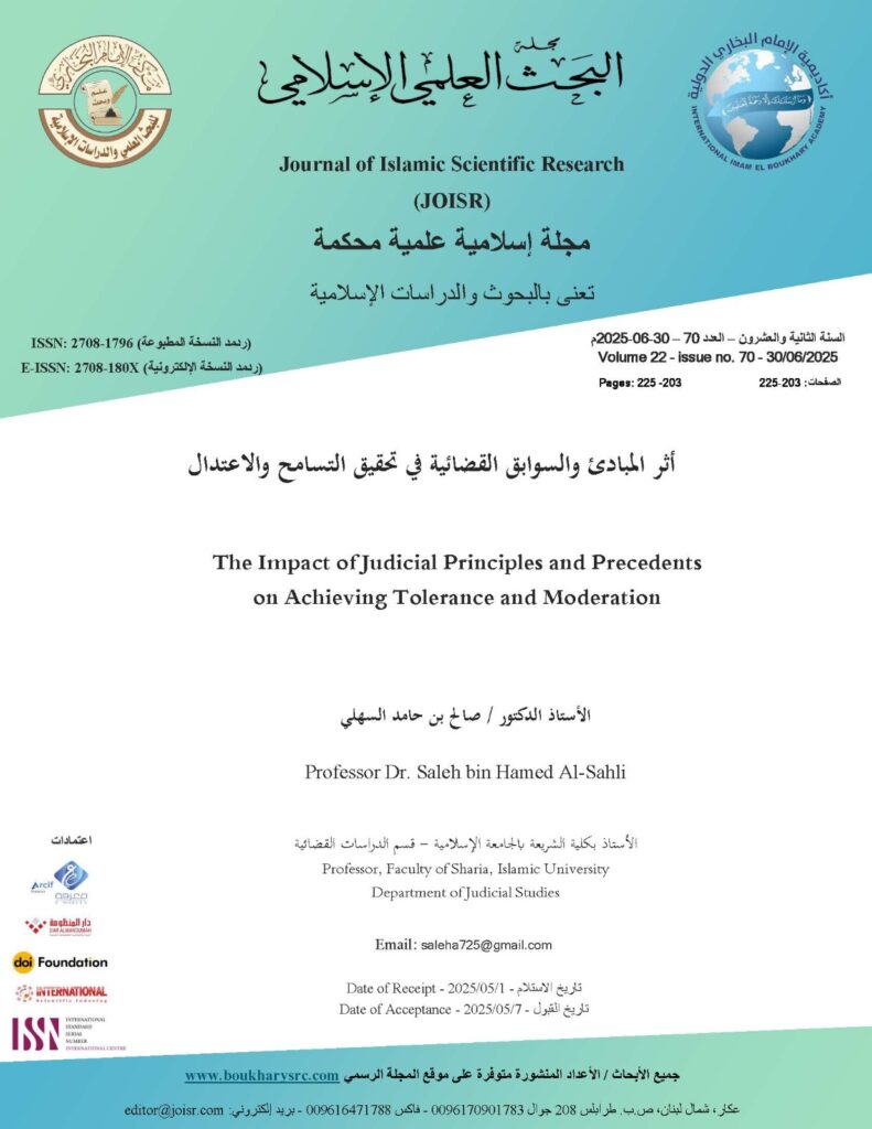 هذا البحث يبرز الدور الحيوي للمبادئ والسوابق القضائية في تشكيل وعي مجتمعي قائم على التسامح، ويوضح كيفية توظيف القضاء كأداة لحماية النسيج الاجتماعي ويساهم في تقديم توصيات لتعزيز العدالة كدعامة لاستدامة السلم المجتمعي. وليس للسوابق القضائية في الشريعة الإسلامية حجية تجعلها من القوة بحيث لا يستطيع القاضي اللاحق مخالفة القاضي السابق في ذلك الحكم. وقد كان القضاء بما قضى به الصالحون منهجًا لدى سلفنا الصالح رحمهم الله ومما قرره الفقهاء ضرورة اطلاع القاضي على أحكام من سبقه من القضاة لينهل منها، وتكون له موردًا معينًا.