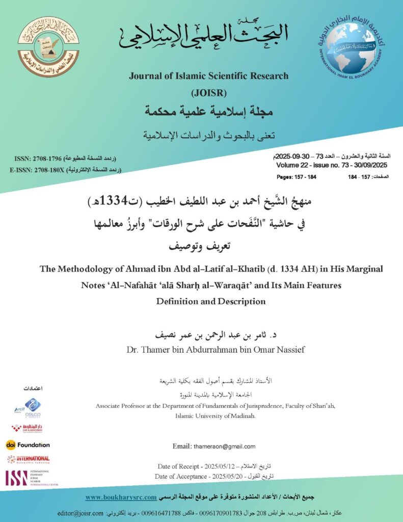 The Methodology of Ahmad ibn Abd al-Latif al-Khatib (d. 1334 AH) in His Marginal Notes ‘Al-Nafahāt ‘alā Sharḥ al-Waraqāt’ and Its Main Features