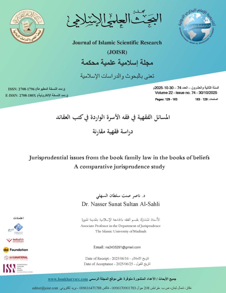 Jurisprudential issues from the book family Iaw in the books of beliefs (a comparative jurisprudence study)