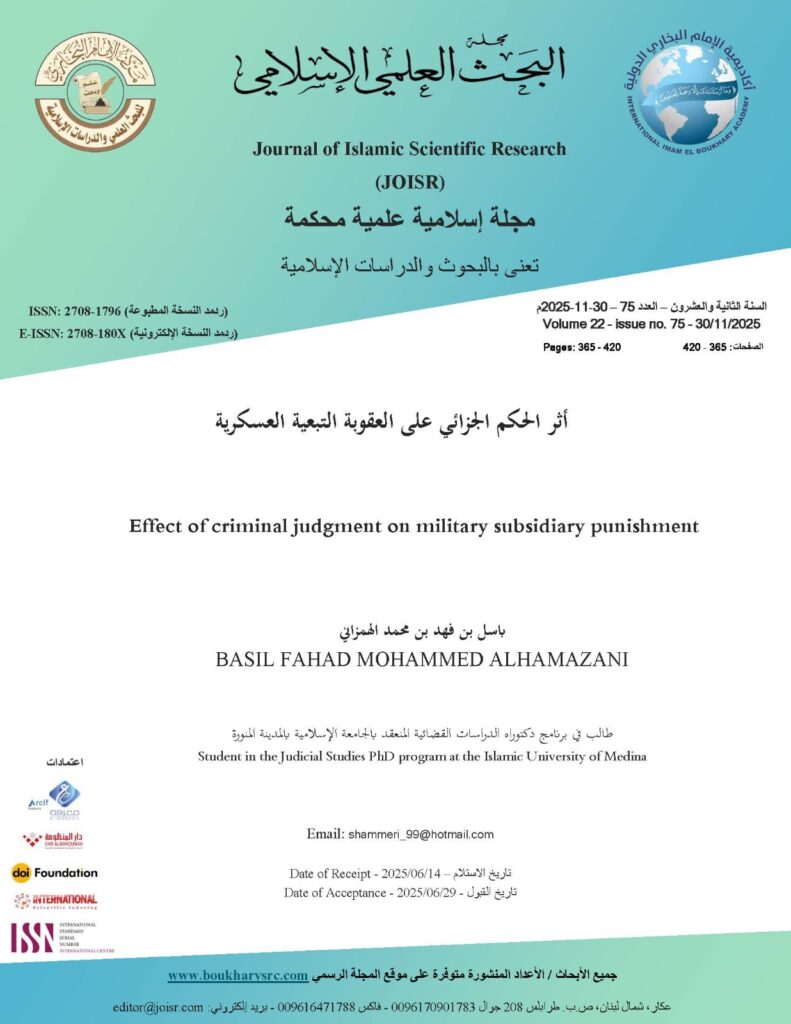 The research casts its shadow over criminal judgments and their extended effects on military subsidiary punishments. It addresses the nature of criminal judgments and the concept of military subsidiary punishments. It also demonstrates the legitimacy of military subsidiary punishments and the position of Saudi law on them. Furthermore, it examines the impact of criminal judgments of acquittal on military subsidiary punishments, based on each of the grounds for criminal acquittal. It also examines the impact of criminal judgments of conviction on military subsidiary punishments, based on each of the grounds for criminal convictions.