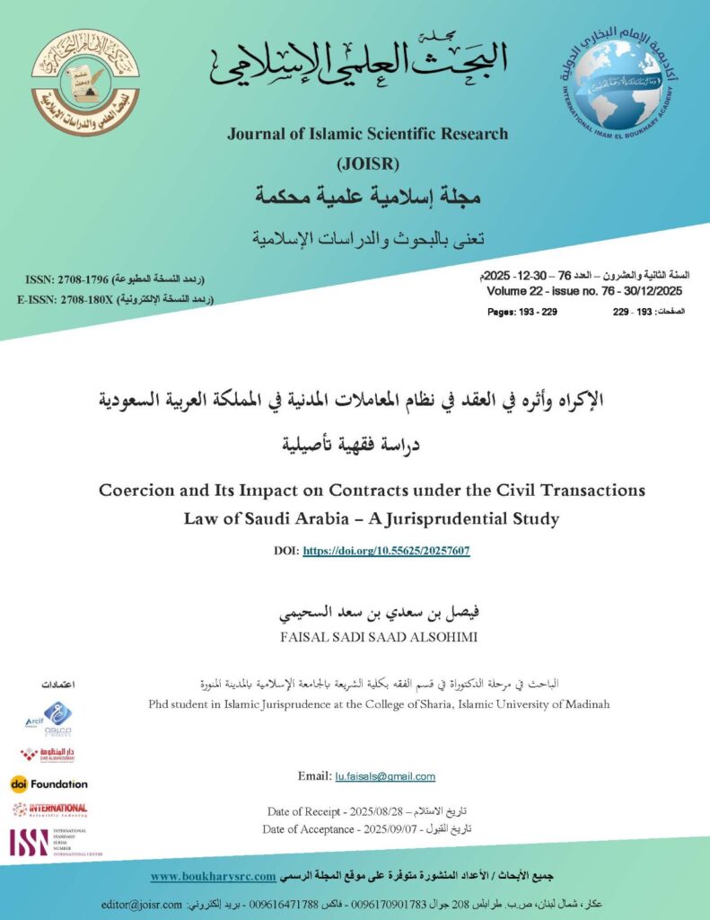 Title of the Study: Coercion and Its Impact on Contracts under the Civil Transactions Law of Saudi Arabia: A Jurisprudential Study: A Jurisprudential Study