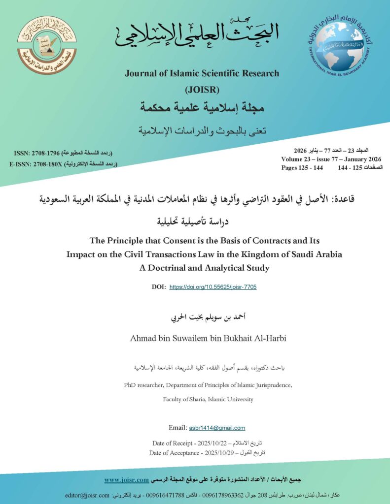 This research addresses the legal maxim: “The presumption in contracts is mutual consent” and its impact within the civil transactions system in the Kingdom of Saudi Arabia. The study is structured into an introduction and four main sections.